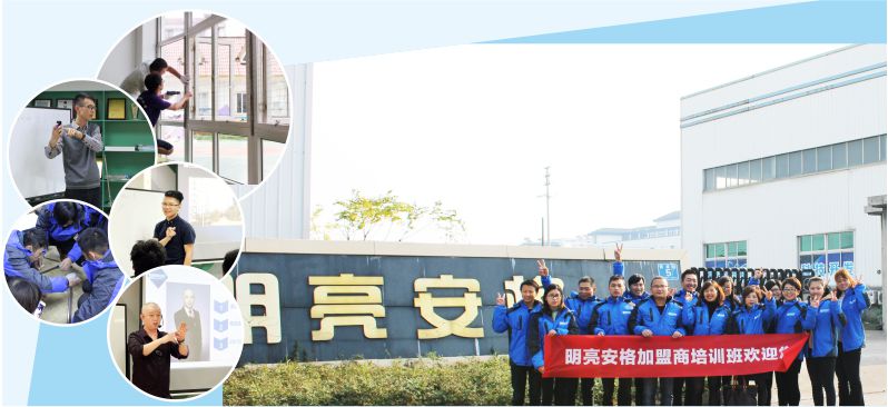 明亮安格開設培訓班,以成熟的培訓機制,特聘專業(yè)講師和優(yōu)秀加盟商為加盟商開展企業(yè)文化、產(chǎn)品知識、測量安裝、銷售技巧、活動策劃、市場推廣、渠道拓展、公關禮儀等專題培訓。